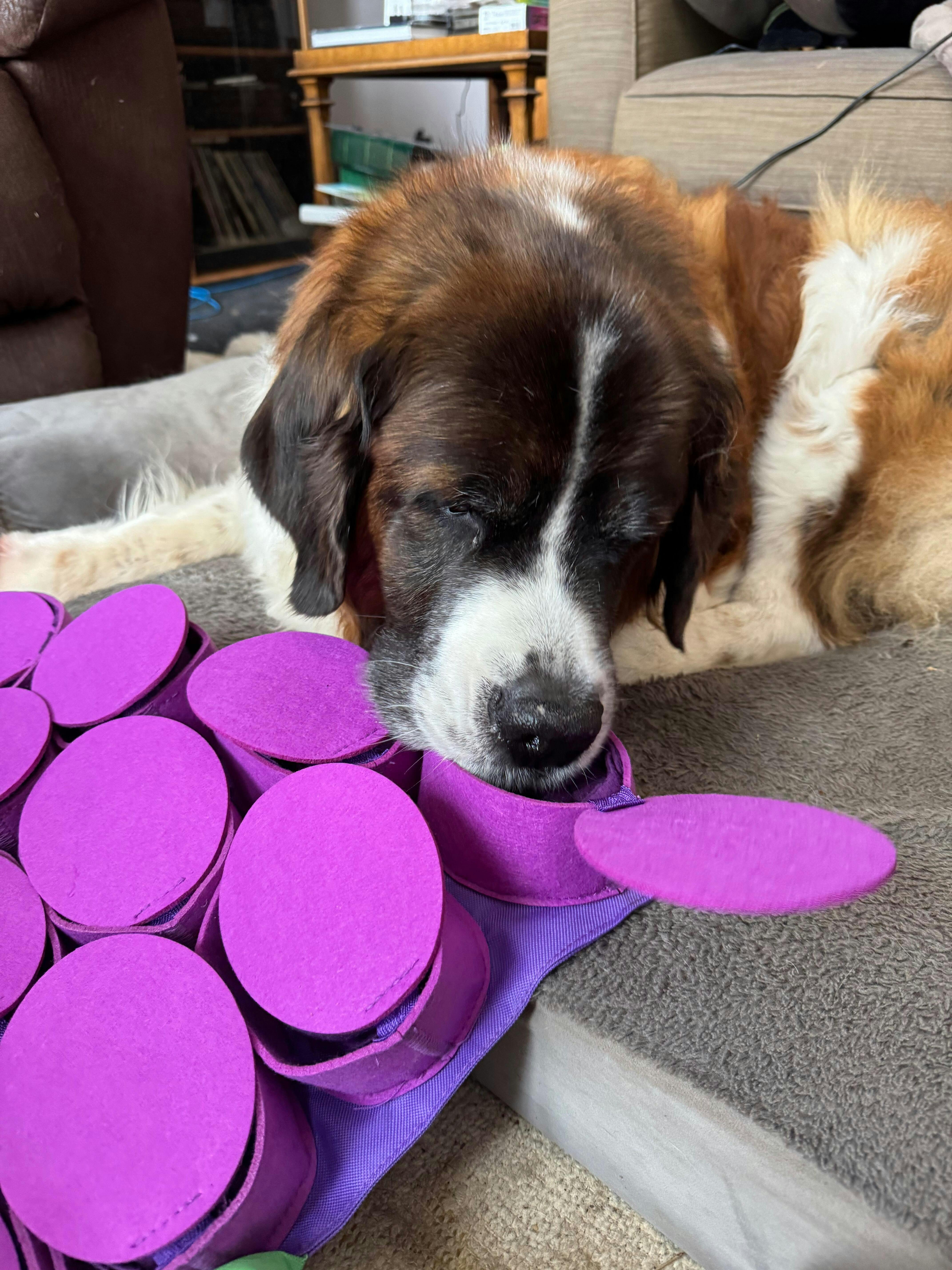 • For quick wins, fill a snuffle mat or lick mat before stressful events: visitors, storms, fireworks or your daily commute.