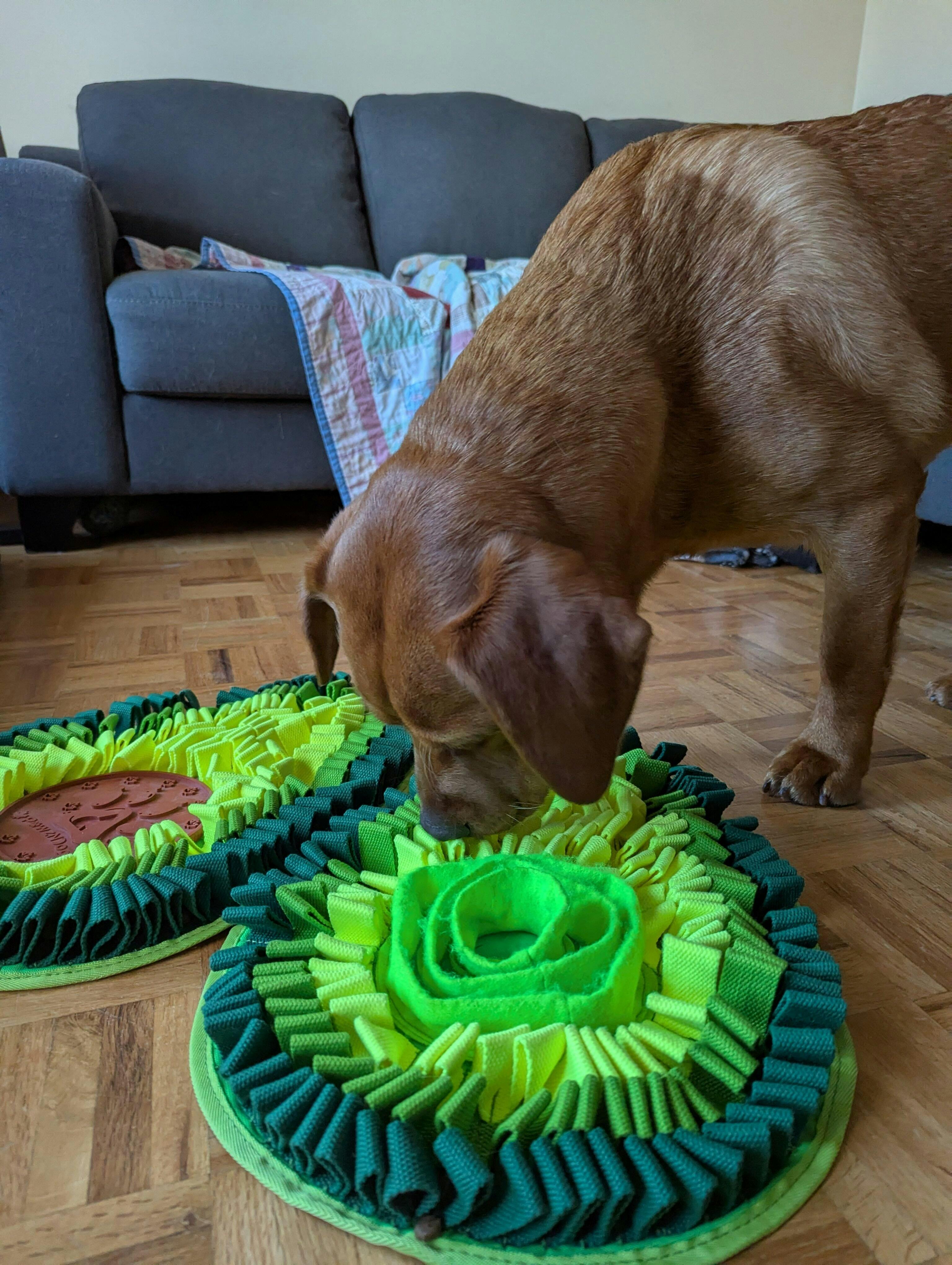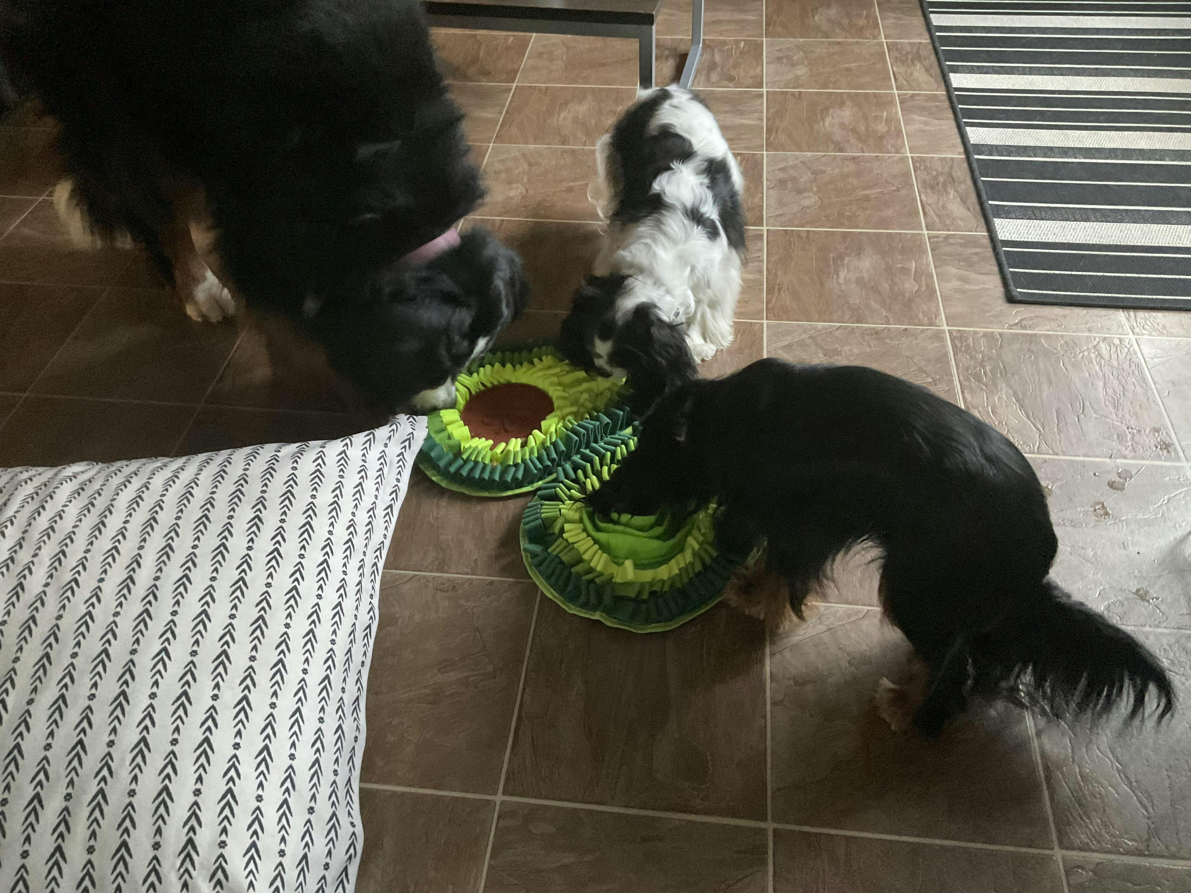 Our dogs are obsessed with the snuffle mat we got. It keeps him engaged, mentally stimulated, and calm — especially on rainy days when we can’t go for long walks. We’ve noticed a huge improvement in their focus and sniffing confidence! 😂