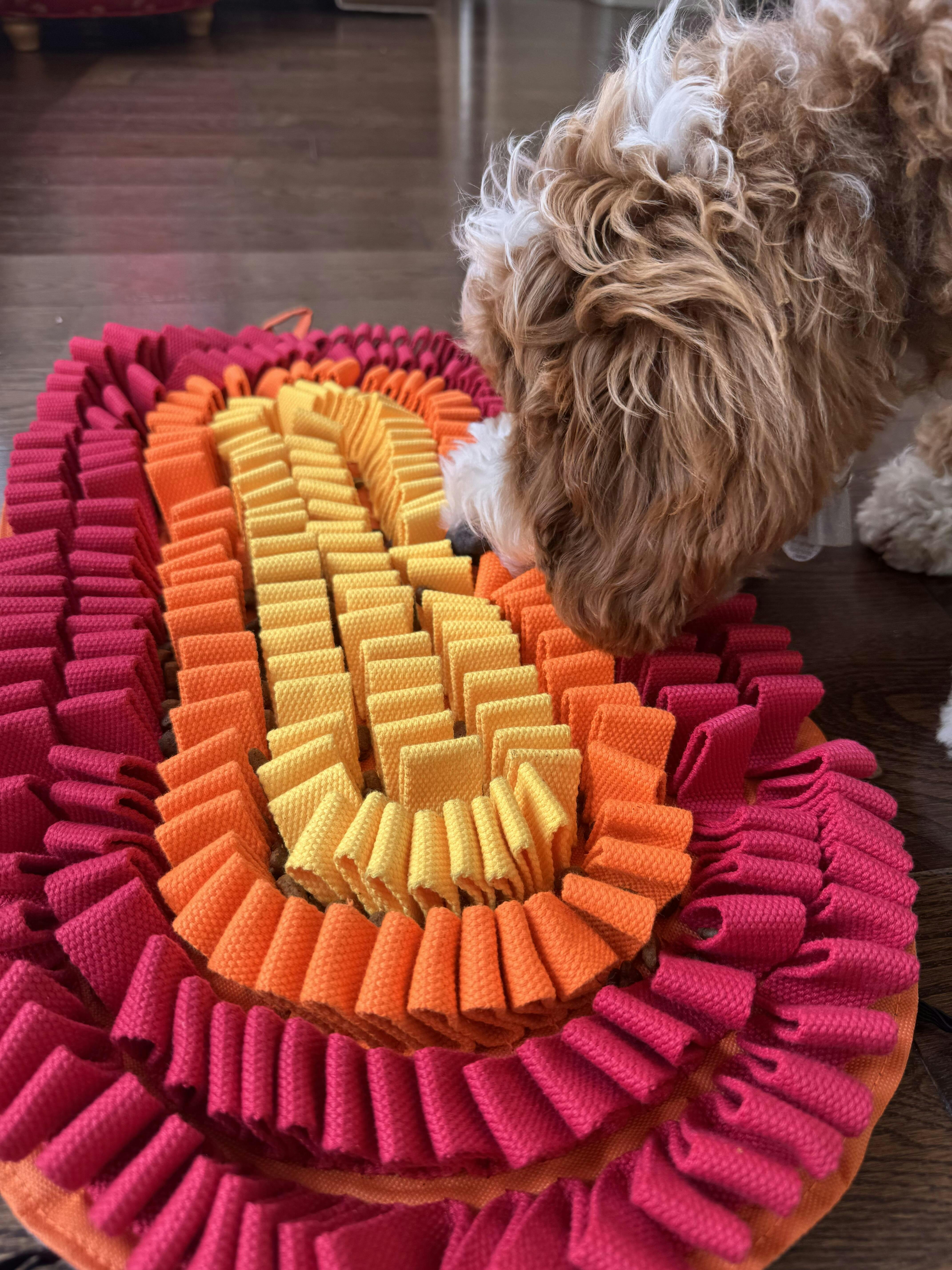 Our little puppy loves her snuffle mat! It’s a great way to keep her brain working and occupied while enjoying some treats! High quality and so cute too!