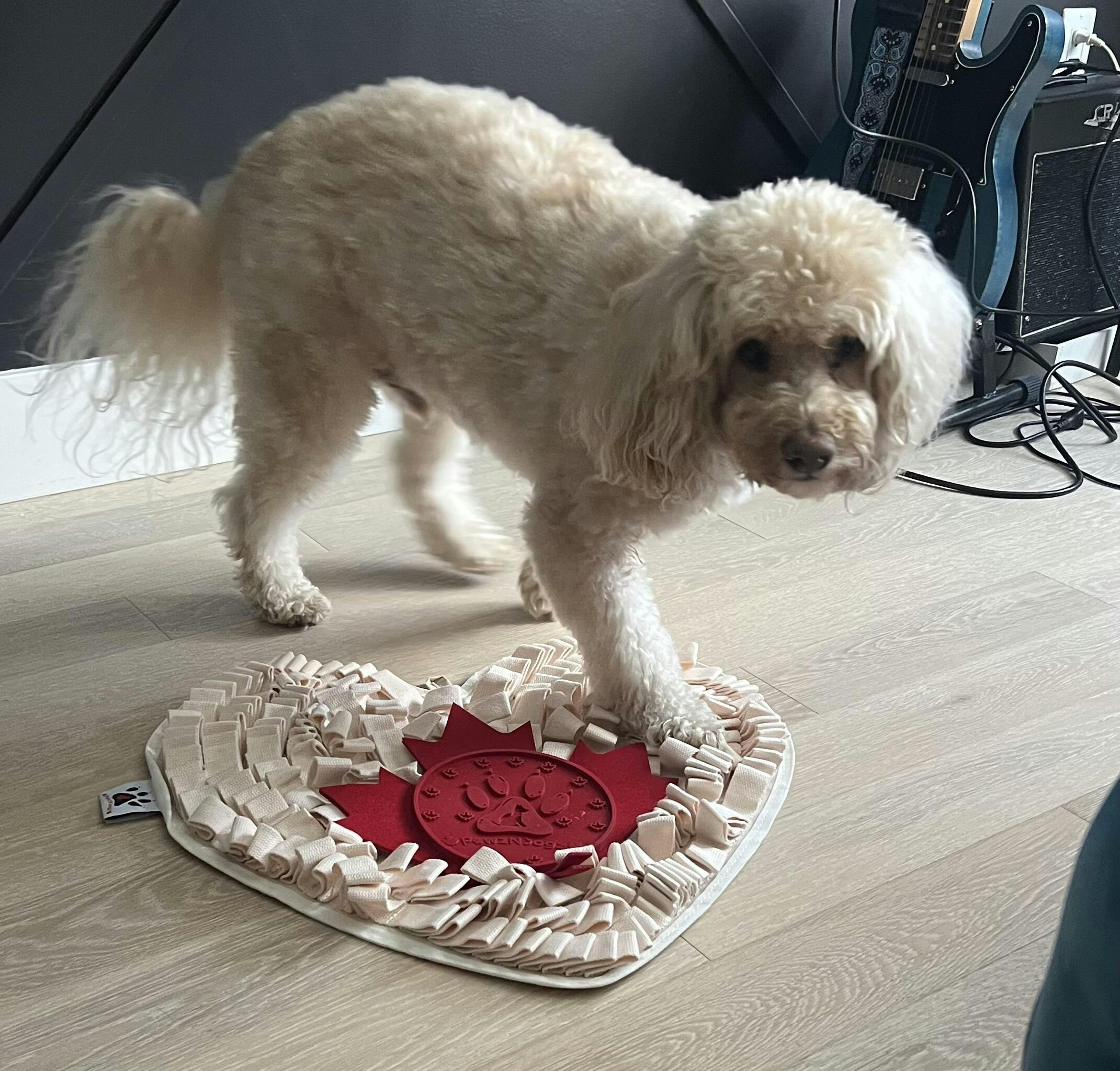 I’m really happy with this snuffle mat! The design is super cute, and I love that it’s from a Canadian local company. The mat is exactly as advertised—made from high-quality, durable materials—and my dog Sefi absolutely loves it. It’s already become part of our morning routine, and she always goes to it first.