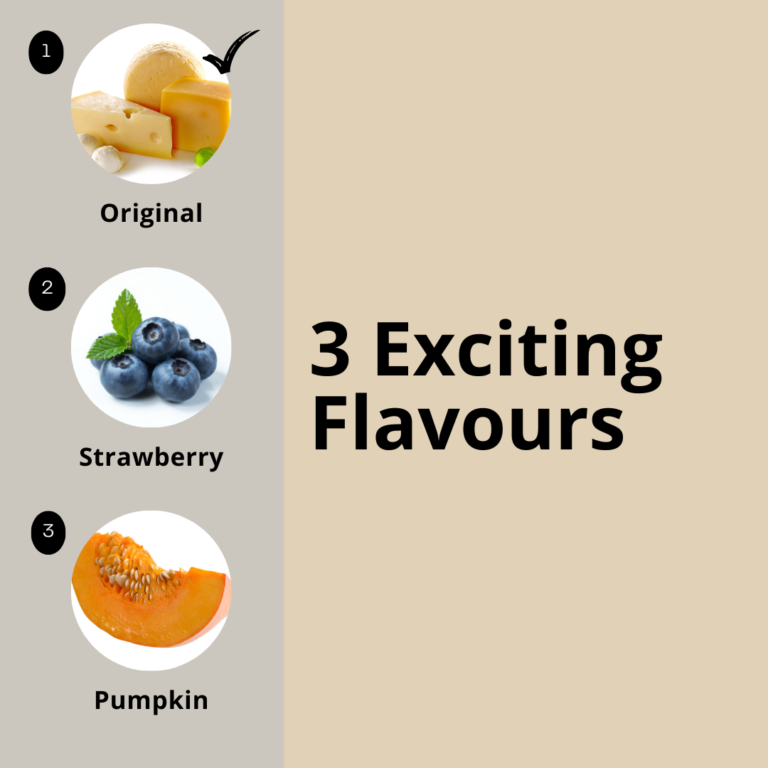 Available in 3 flavours - Original, Pumpkin, Blueberry