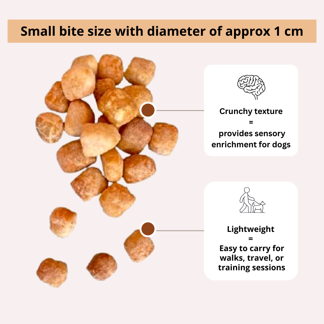 These all-natural puffs offer a high-value, protein-rich treat that supports mental enrichment, helps reduce boredom, and keeps dogs happily engaged. Their airy texture makes them easier to chew while still providing a rewarding crunch dogs love.